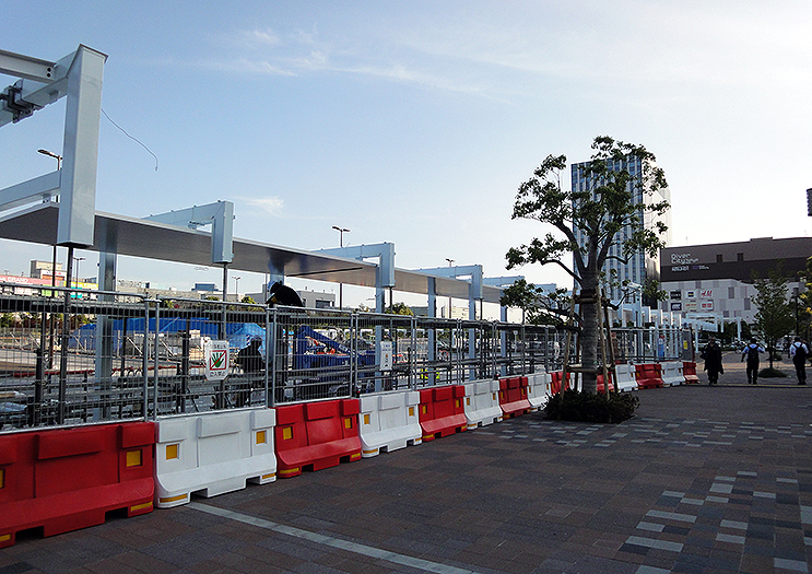 りんかい線 東京テレポート駅の南側、駅出口からヴィーナスフォートへむけた駅前広場に、新しい屋根つきロータリーが出現しはじめたよ。