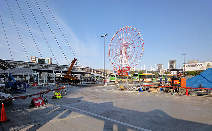 東京テレポート駅前に新しい屋根つき路線バス停車場が出現