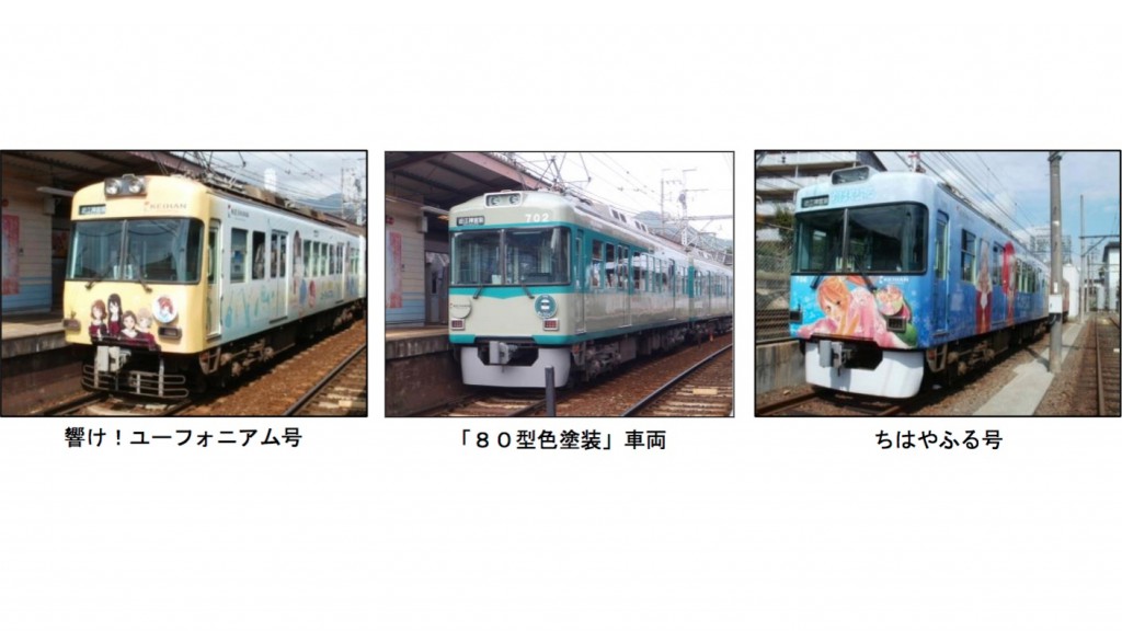京阪電鉄は平成15年から開催している「大津線感謝祭」を錦織車庫で開催する。今年はラッピング電車「響け!ユーフォニアム号」「ちはやふる号」「80型色塗装」の展示、さらに「ちはやふる号」の乗車体験も用意される。