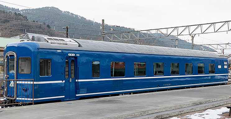 フジサン特急2000系 展望車両2001号や国鉄169系急行形電車、14系寝台客車ブルートレイン、5000系トーマスランド号などが構内に展示されている富士急行線 下吉田駅。